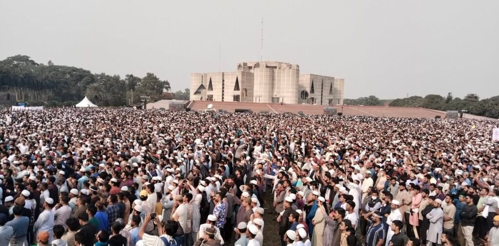 জানাজার আগে সংক্ষিপ্ত বক্তব্য দেন অন্তর্বর্তী সরকারের ধর্মবিষয়ক উপদেষ্টা আ ফ ম খালিদ হোসেন। জানাজা ঘিরে মানিক মিয়া অ্যাভিনিউ ও সংসদ ভবনসংলগ্ন এলাকা জনসমুদ্রে পরিণত হয়।